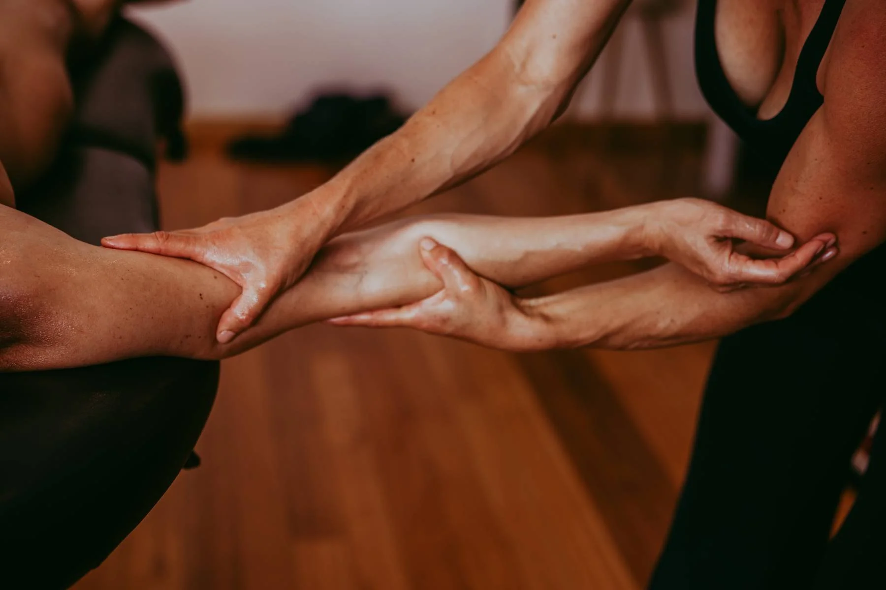 Ebony 擅長呼吸引導、按摩技術、雙人瑜珈,她的教學融合了舞蹈與瑜珈背景,將身體帶回自然、流動且有支持力的狀態。她引導學員透過肢體活動先進入自己的身體,感受重心、節奏與呼吸,再將這份覺察帶入按摩實作之中。